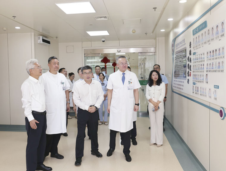 他強調,要進一步加強黨建引領,特別是結合深入貫徹中央八項規定精神學習教育、醫德醫風專項整治行動等,把黨的政治優勢轉化為推動醫療業務發展的強大動力,以高質量黨建推動醫院高質量發展。要進一步加強學校和醫院的融合發展,學校的人才培養、科學研究、社會服務、文化建設、國際化推進等,都要與醫院的醫療、教學、科研工作緊密融合,從而更高效地破解當前發展中存在的一些實際難題。要加強醫療服務、人才培養和科研創新等關乎長遠發展的核心領域建設,特別要對標國內第一方陣醫院,著力加強內涵建設,提升綜合實力,為推進國內一流特色鮮明醫科大學建設提供堅強支撐,為健康中國和健康河北建設貢獻力量。