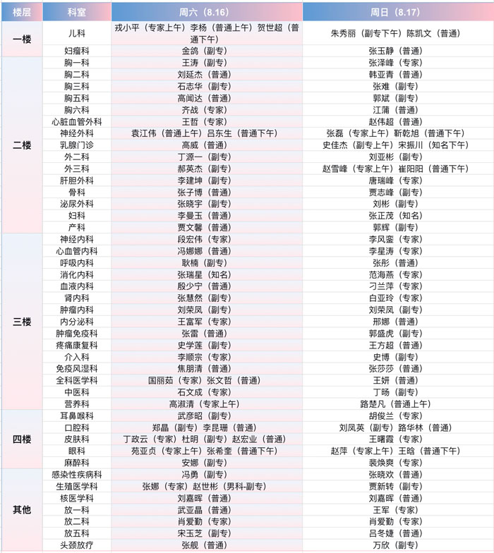 注:具體以實際出診為準。