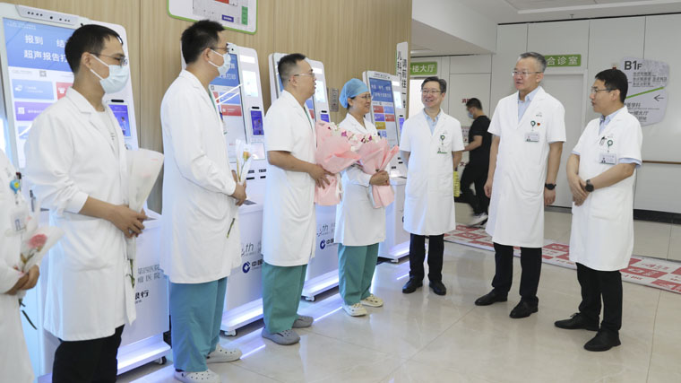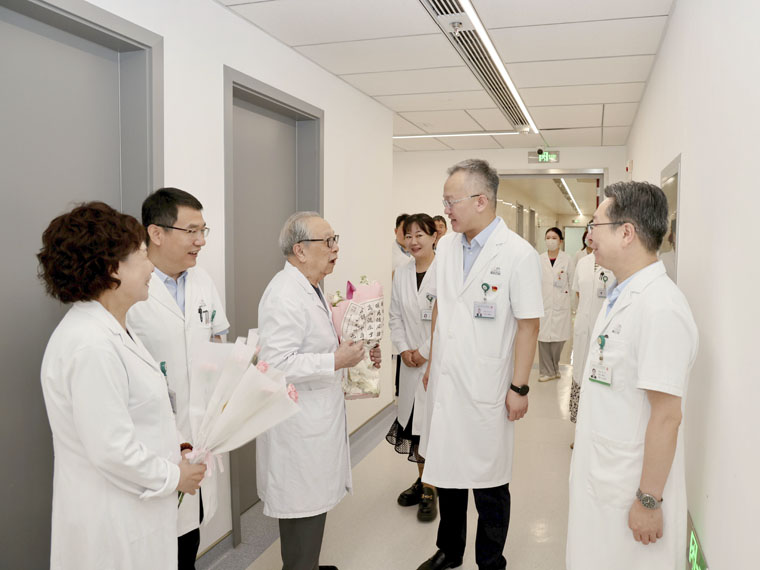 當日上午,全體院領導帶領相關職能部門負責人,分批次在兩院區親切慰問了仍然奮斗在一線的老專家、老教授和臨床醫技科室醫務工作者,為他們送上鮮花和掌聲,并致以節日的問候和誠摯的祝福。