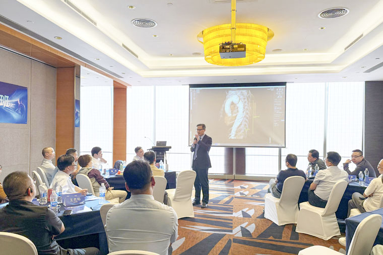 在學術交流環節,專家們圍繞開放手術、雜交手術及微創技術的最新實踐展開深入分享。我院趙永波副教授帶來了《胸骨旁肋間切口聯合微孔技術治療A型夾層的探索》,重慶醫科大學第一醫院趙渝教授分享了《從結構仿真到血流仿生探索胸主動脈支架之變》,武漢大學中南醫院粱川教授講解了《復雜主動脈病變的腔內重建:從弓上到胸腹段的策略》,內容覆蓋主動脈疾病診療全領域,為參會者提供了多維度的學術視角。