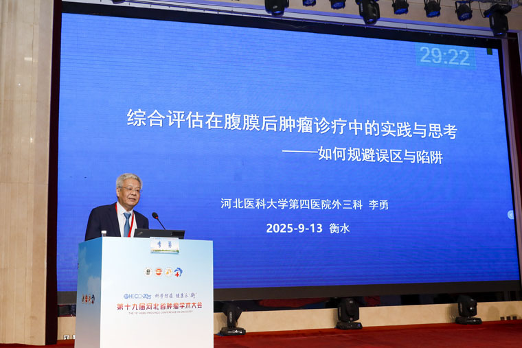 在主會場,郝希山院士通過《精準醫學時代腫瘤治療新探索》分享了行業前沿進展,彭向紅教授帶來了《澳門腫瘤防治經驗分享》,魏文強教授就《從篩查困境到防控突破——食管癌防控體系重構策略思考》做了報告。我院外三科李勇教授以《綜合評估在腹膜后腫瘤診療中的實踐與思考——如何規避誤區與陷阱》為題帶來深入思考,衡水市第四人民醫院王玉新教授講解了《構建腫瘤全程康復新體系:從生存到生活的賦能之旅》。