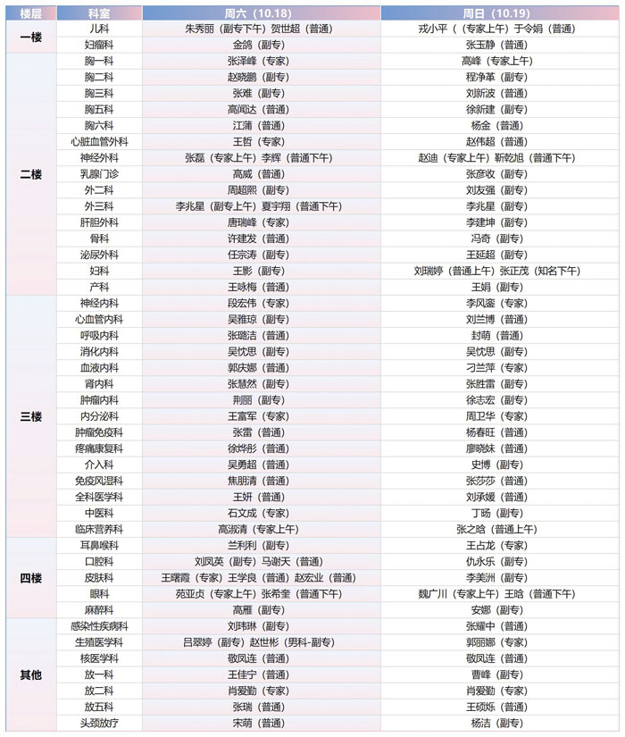 注:具體以實際出診為準。
