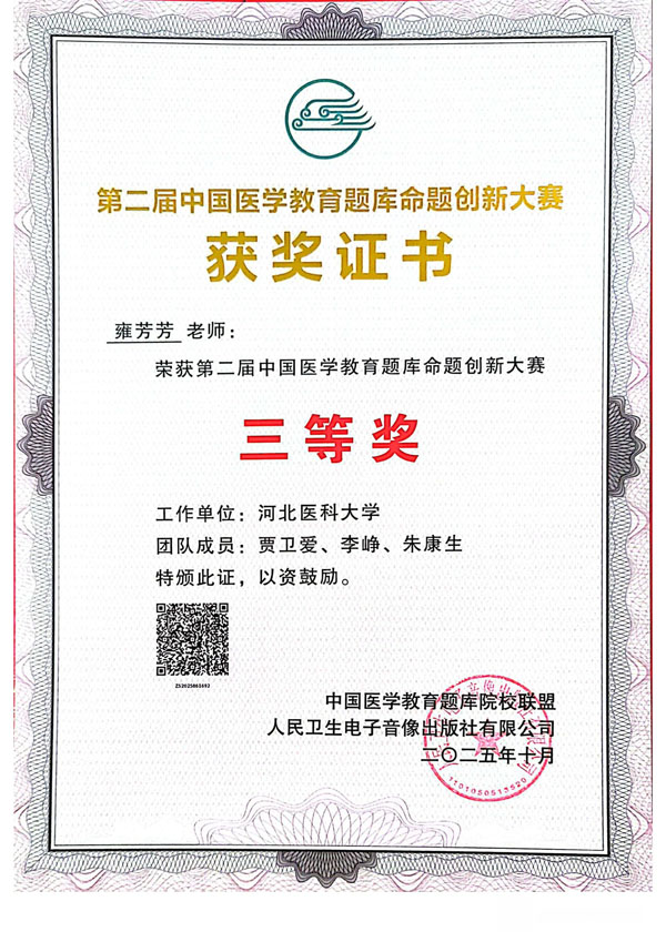10月19-21日,由中國醫學教育題庫院校聯盟、人民衛生電子音像出版社聯合主辦,中國醫科大學承辦的第二屆中國醫學教育題庫命題創新大賽在北京舉行。我院麻醉教研室教師團隊首次代表學校參賽,歷經層層選拔,最終榮獲全國三等獎,展現了我院在醫學教育教學改革領域的扎實功底與創新實力。