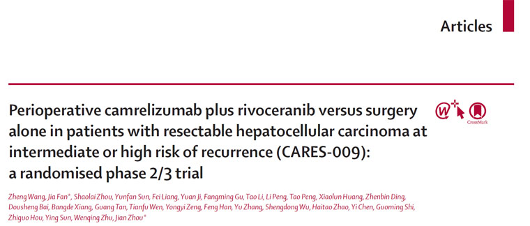 CARES-009研究聚焦于可切除但伴中高危復發風險的肝細胞癌患者,探索在圍手術期采用“卡瑞利珠單抗聯合阿帕替尼”(“雙艾”方案)的“新輔助+手術+輔助”的“三明治”式治療模式。研究結果顯示,與單純手術相比,“雙艾”方案顯著延長患者的中位無事件生存期(EFS),從對照組的19.4個月提升至42.1個月,療效實現翻倍。這一突破性成果為全球肝癌患者提供了全新治療選擇,有望推動國際臨床實踐指南更新。