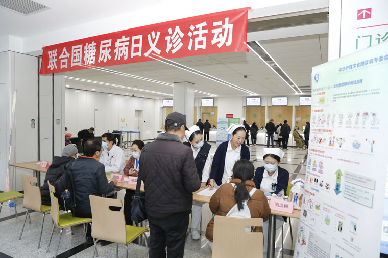 11月14日,在第19個“世界糖尿病日”當天,我院內分泌科圍繞今年“糖尿病與幸福感——預防糖尿病并發癥”主題,在本部及東院區門診大廳同步舉辦多學科聯合義診活動,通過專家團隊現場診療、健康指導及免費檢測等服務,為市民提供專業的糖尿病綜合防治支持。