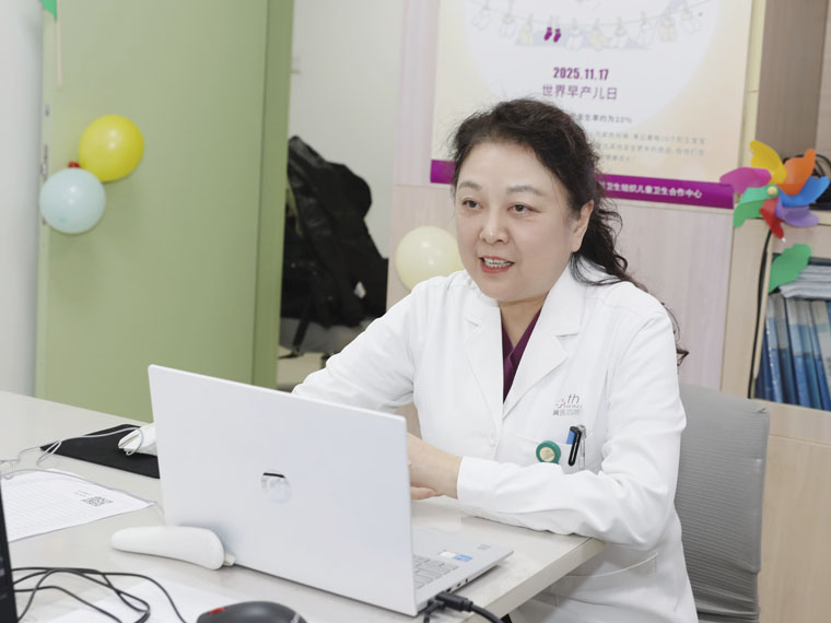 三位出生胎齡僅有25周、26周的早產寶媽現場分享了心路歷程,她們坦言曾歷經焦慮與忐忑,但始終選擇充分信任醫護人員、積極配合診療,同時主動學習科學育兒知識,對醫護人員一路守護與陪伴表示誠摯謝意。早產寶寶線上才藝展示把活動推向高潮,看到曾經僅有500、600g左右的寶寶們已經蛻變為能歌善舞、背誦寫字的健康兒童,更加堅定了醫護人員守護早產寶寶,助力他們茁壯成長的決心。