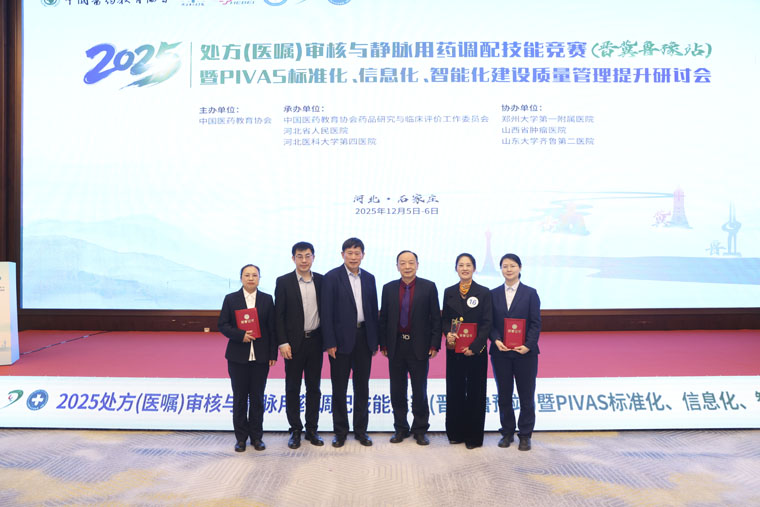 12月6日,由中國醫藥教育協會主辦的“處方(醫囑)審核與靜脈用藥調配技能競賽(晉冀魯豫站)暨PIVAS標準化、信息化、智能化建設質量管理提升研討會”在石家莊舉行。來自河北、河南、山東、山西四省的預選賽一等獎獲得者,共16支代表隊齊聚總決賽舞臺。我院藥學部孟雪梅護師與周梅藥師憑借扎實的專業功底和出色的臨場應變能力,勇奪競賽第一名。