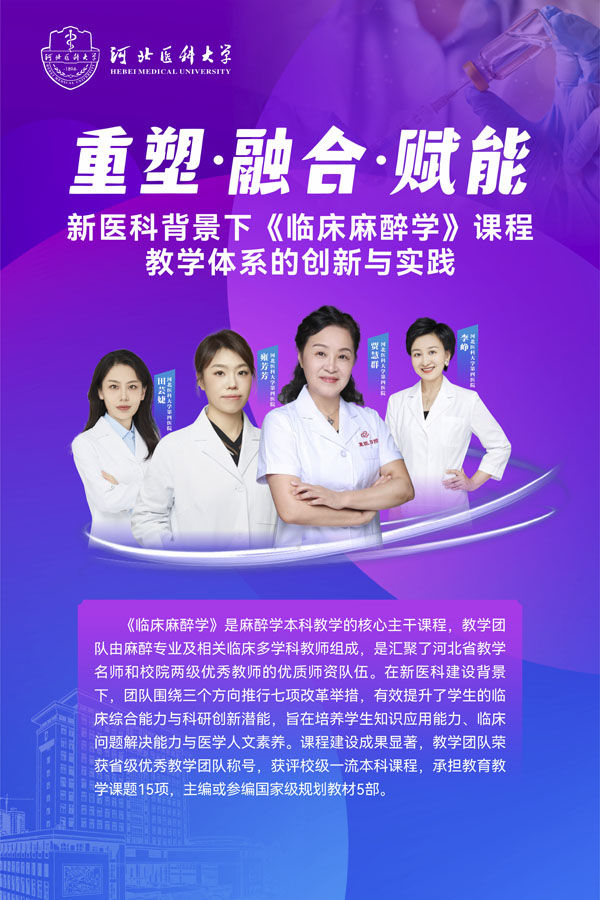 本次獲獎(jiǎng)是我院持續(xù)推動(dòng)教育教學(xué)改革、鼓勵(lì)教學(xué)創(chuàng)新、提升人才培養(yǎng)質(zhì)量的重要成果,也是麻醉學(xué)系長期以來重視教學(xué)、培育團(tuán)隊(duì)、追求卓越的充分體現(xiàn)。我院將繼續(xù)深化教學(xué)創(chuàng)新實(shí)踐、優(yōu)化課程教學(xué)體系,為進(jìn)一步提升人才培養(yǎng)質(zhì)量、推動(dòng)教育教學(xué)內(nèi)涵式發(fā)展貢獻(xiàn)力量。