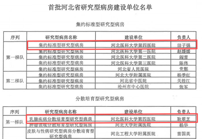 12月17日,河北省衛生健康委員會與河北省藥品監督管理局聯合發布《關于公布首批河北省研究型病房建設單位的通知》,我院申報的研究型病房項目——由副院長田子強教授負責的“集約標準型研究型病房”和乳腺中心耿翠芝教授負責的“乳腺疾病診療中心分散培育型研究型病房”雙雙成功入選。這標志著我院在臨床研究平臺建設領域取得重要突破,將為河北省乃至全國的醫學科技成果轉化注入強勁動力。