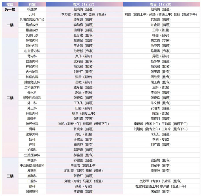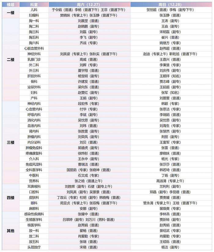 注:具體以實際出診為準。