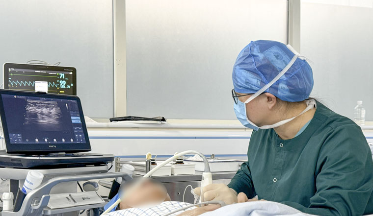 以往乳腺腫物日間手術(shù)多在局部麻醉下由外科醫(yī)生獨立完成,常面臨鎮(zhèn)痛不全、患者術(shù)中緊張焦慮以及外科醫(yī)生難以兼顧高危患者生命體征監(jiān)測等挑戰(zhàn)。今年年初,麻醉科主動介入,針對每位患者制定個體化麻醉方案。一是精準鎮(zhèn)痛,通過超聲引導下神經(jīng)阻滯,針對腫物位置進行精準麻醉,使患者術(shù)中疼痛感顯著減輕,基本實現(xiàn)無痛手術(shù);二是舒適鎮(zhèn)靜,對于緊張焦慮的患者,提供安全的靜脈鎮(zhèn)靜服務,讓患者在“睡眠”中舒適完成手術(shù)。