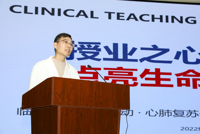 近日,我院麻醉學(xué)系和教務(wù)處聯(lián)合麻醉學(xué)教研室、內(nèi)科學(xué)教研室在東院區(qū)報告廳舉辦了心肺復(fù)蘇公益培訓(xùn)活動,主題為“授業(yè)之心,點亮生命”。活動以2022級麻醉本科生的一堂內(nèi)科學(xué)急救課程為主線,創(chuàng)新將臨床理論教學(xué)、實操技能訓(xùn)練與社會責(zé)任培育深度融合,旨在打造一堂兼具專業(yè)性與人文溫度的生命教育特色課程。