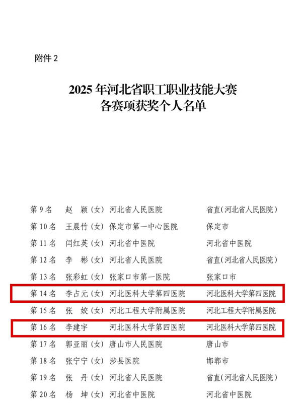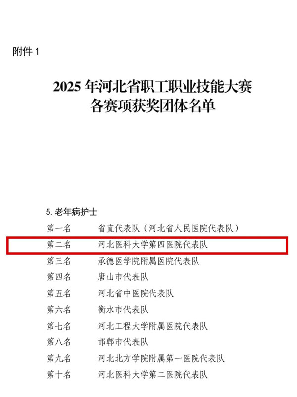 近日,由河北省總工會、河北省人力資源和社會保障廳、河北省衛(wèi)生健康委員會聯(lián)合主辦的河北省老年醫(yī)療護(hù)理技能競賽落幕。由重癥醫(yī)學(xué)科高鵬、李建宇,消化內(nèi)科李亞楠和東院急診科李占元組成的我院護(hù)理代表隊,經(jīng)過理論考試、基礎(chǔ)操作、案例操作三個環(huán)節(jié)考核,在與全省63支代表隊近300名選手同臺競技中脫穎而出,獲得團(tuán)體總分第二名。李占元、李建宇兩名選手憑借優(yōu)異表現(xiàn)成功躋身個人成績前20名。