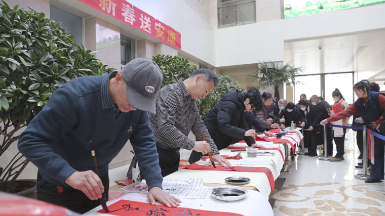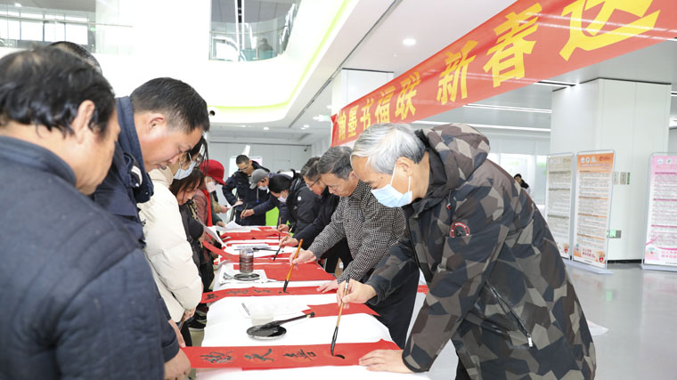 為弘揚中華民族優(yōu)秀傳統(tǒng)文化,傳遞新春美好祝福,新春佳節(jié)來臨之際,在我院工會與宣傳部的組織下,書畫協(xié)會分別于兩院區(qū)門診大廳開展了新春送福活動,現(xiàn)場為群眾送上春聯(lián)和福字1000余幅,以筆墨寄深情,傳遞四院溫度。