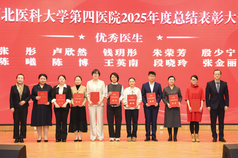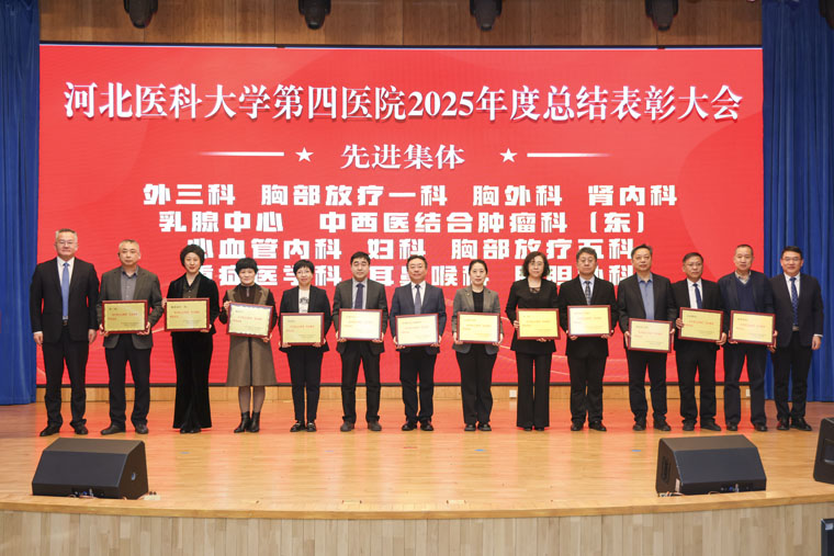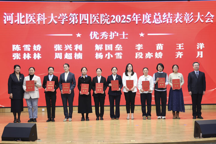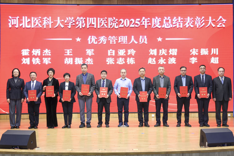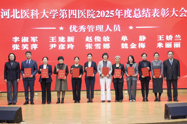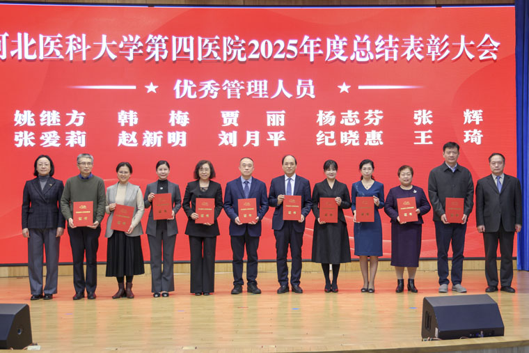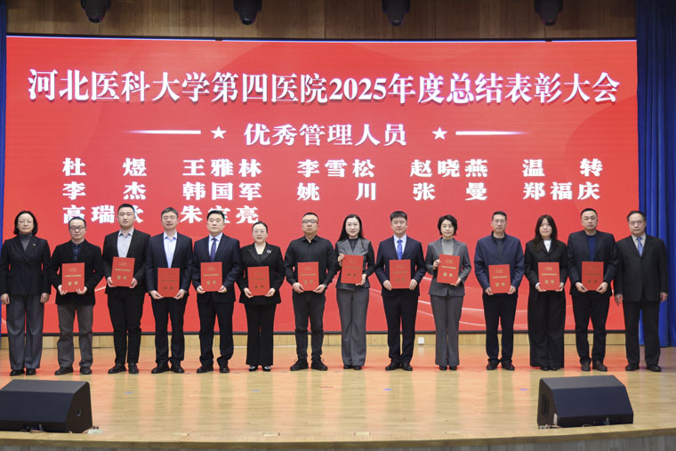 表彰環(huán)節(jié)中,常務(wù)副院長何宏濤宣讀《中共河北醫(yī)科大學(xué)第四醫(yī)院委員會(huì)關(guān)于表彰2025年度先進(jìn)集體、先進(jìn)個(gè)人的決定》及先進(jìn)集體名單;黨委副書記、紀(jì)委書記李曉玲宣讀優(yōu)秀醫(yī)生名單;總會(huì)計(jì)師魏迎宣讀優(yōu)秀護(hù)士名單;副院長田曉玲宣讀優(yōu)秀藥技人員、優(yōu)秀管理人員、優(yōu)秀黨政后勤人員名單;副院長田子強(qiáng)宣讀2025年度獲得市級(jí)以上榮譽(yù)稱號(hào)名單。院領(lǐng)導(dǎo)分別為先進(jìn)集體代表及優(yōu)秀個(gè)人頒獎(jiǎng),現(xiàn)場(chǎng)氣氛熱烈。