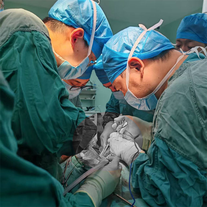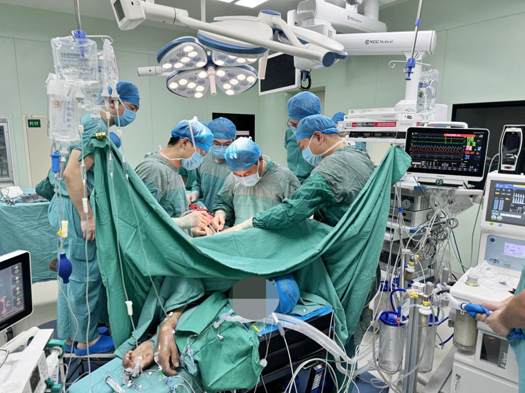 一場(chǎng)跨越200余公里的生命救援就此打響。家屬聯(lián)系當(dāng)?shù)丶本戎行模茸o(hù)車一路疾馳,歷經(jīng)近3小時(shí)轉(zhuǎn)運(yùn),將患者安全送達(dá)我院東院區(qū)。同時(shí),在田子強(qiáng)教授的統(tǒng)籌下,呂會(huì)來(lái)教授迅速聯(lián)系重癥醫(yī)學(xué)科趙釵主任醫(yī)師、麻醉科賈麗主任醫(yī)師、手術(shù)室李淑軍護(hù)士長(zhǎng)等,組建多學(xué)科救治團(tuán)隊(duì),制定覆蓋接診、住院、手術(shù)及術(shù)后管理的全流程預(yù)案,為患者搭建起暢通無(wú)阻的綠色通道。