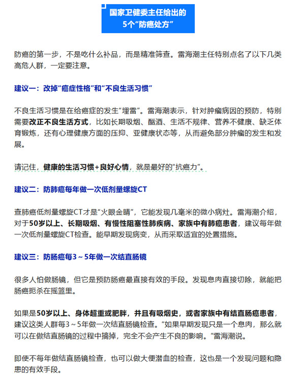 收藏!國(guó)家衛(wèi)健委主任給出的5個(gè)“防癌處方”,尤其最后一條關(guān)乎全家