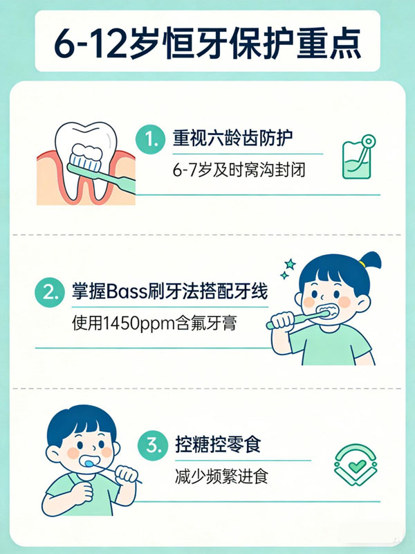 6–12歲:恒牙保護(hù)關(guān)鍵期,守護(hù)“六齡齒”的“黃金10年”