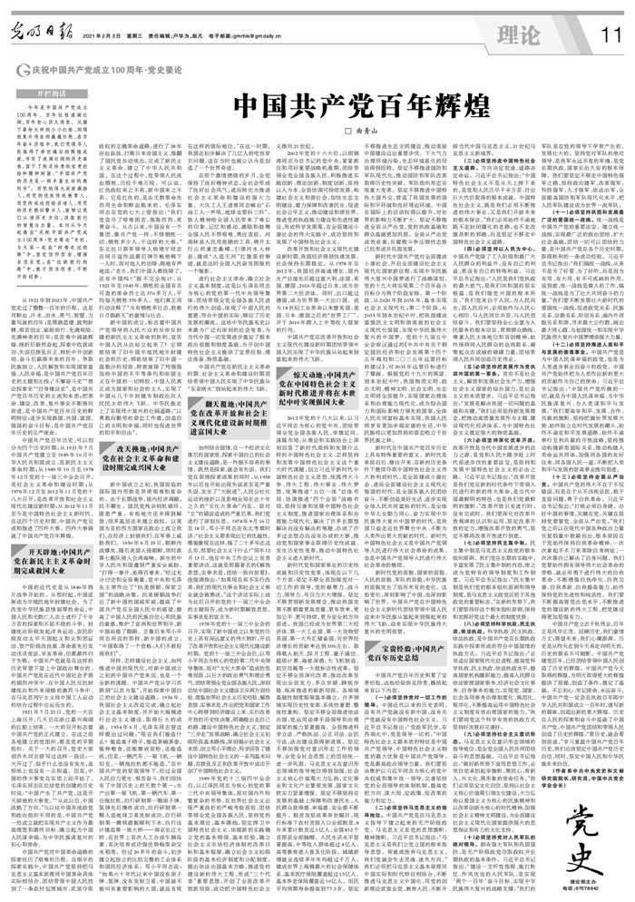 近期,《光明日報》刊發(fā)中共中央黨史和文獻研究院院長、研究員,中國中共黨史學會會長曲青山《中國共產(chǎn)黨百年輝煌》一文,全文如下: