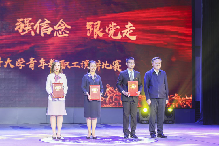 4月29日,河北醫(yī)科大學(xué)慶祝中國共產(chǎn)黨成立100周年“學(xué)黨史 強(qiáng)信念 跟黨走”青年教職工演講比賽決賽在河北醫(yī)科大學(xué)主樓大禮堂舉辦,18位選手緊扣主題、結(jié)合實際,用真摯的感情、生動的語言獻(xiàn)上了一場黨史教育的視聽盛宴。我院護(hù)理部副主任秦明祎與另外2名選手脫穎而出,榮獲本次大賽一等獎,學(xué)校黨委書記翟海魂上臺為她們頒獎并表示祝賀。