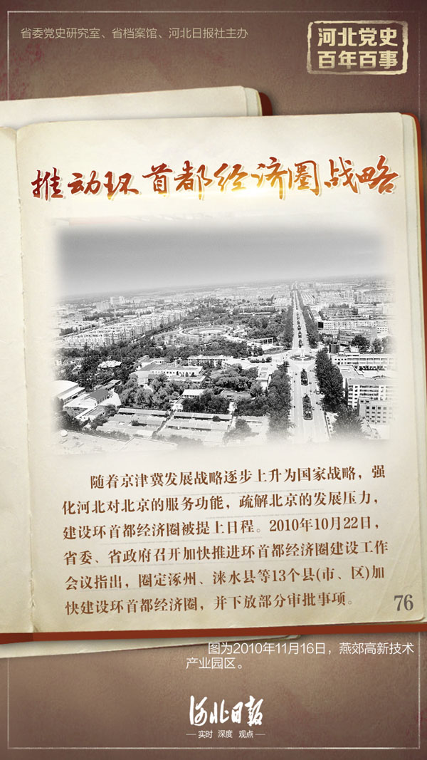 隨著京津冀發(fā)展戰(zhàn)略逐步上升為國(guó)家戰(zhàn)略,強(qiáng)化河北對(duì)北京的服務(wù)功能,疏解北京的發(fā)展壓力,建設(shè)環(huán)首都經(jīng)濟(jì)圈被提上日程。在河北省編制的第十二個(gè)五年規(guī)劃中,提出六大工作重點(diǎn)之一就是推進(jìn)環(huán)首都經(jīng)濟(jì)圈的建設(shè)。2010年10月22日,河北省委、省政府召開(kāi)加快推進(jìn)環(huán)首都經(jīng)濟(jì)圈建設(shè)工作會(huì)議指出,圈定涿州市、淶水縣等13個(gè)縣(市、區(qū))加快建設(shè)環(huán)首都經(jīng)濟(jì)圈,并下放部分審批事項(xiàng)。建設(shè)環(huán)首都經(jīng)濟(jì)圈的總體戰(zhàn)略構(gòu)想是“13縣1圈4區(qū)6基地”。13縣即環(huán)繞北京的涿州市、淶水縣、涿鹿縣、懷來(lái)縣、赤城縣、豐寧滿族自治縣、灤平縣、三河市、大廠回族自治縣、香河縣、廣陽(yáng)區(qū)、安次區(qū)、固安縣;1圈即以新興產(chǎn)業(yè)為主導(dǎo)的環(huán)首都經(jīng)濟(jì)圈,2.7萬(wàn)平方公里485萬(wàn)人口;4區(qū)即環(huán)首都經(jīng)濟(jì)圈高層次人才創(chuàng)業(yè)園區(qū)、科技成果孵化園區(qū)、新興產(chǎn)業(yè)示范園區(qū)、現(xiàn)代物流園區(qū);6基地即在環(huán)首都經(jīng)濟(jì)圈內(nèi)建設(shè)養(yǎng)老、健身、休閑度假、觀光旅游、有機(jī)蔬菜、宜居生活基地。打造環(huán)首都經(jīng)濟(jì)圈的起點(diǎn)是打造三個(gè)新城:一是以廊坊市“北三縣”為基礎(chǔ),建設(shè)京東新城;二是以涿州為基礎(chǔ),建設(shè)京南新城;三是以懷來(lái)、涿鹿為基礎(chǔ),建設(shè)京北新城。