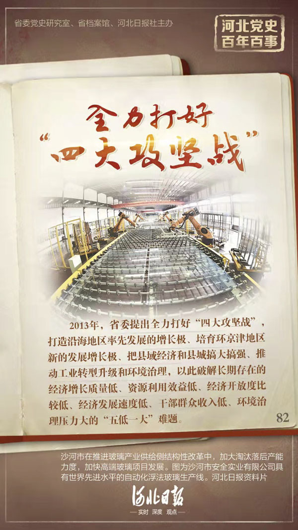 2013年,河北省委提出全力打好“四大攻堅(jiān)戰(zhàn)”,打造沿海地區(qū)率先發(fā)展的增長(zhǎng)極、培育環(huán)京津地區(qū)新的發(fā)展增長(zhǎng)極、把縣域經(jīng)濟(jì)和縣城搞大搞強(qiáng)、推動(dòng)工業(yè)轉(zhuǎn)型升級(jí)和環(huán)境治理,以此破解長(zhǎng)期存在的經(jīng)濟(jì)增長(zhǎng)質(zhì)量低、資源利用效益低、經(jīng)濟(jì)開(kāi)放度比較低、經(jīng)濟(jì)發(fā)展速度低、干部群眾收入低、環(huán)境治理壓力大的“五低一大”難題。
