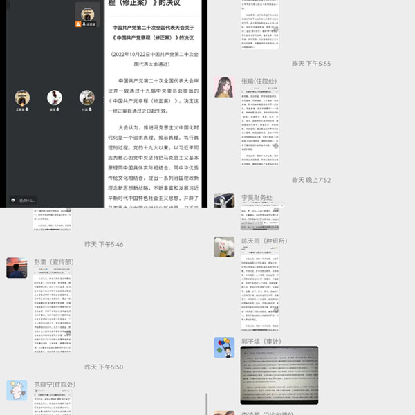 黨有號(hào)召,團(tuán)有行動(dòng)。在前期組織收聽收看大會(huì)直播,認(rèn)真學(xué)習(xí)二十大報(bào)告的基礎(chǔ)上,各團(tuán)支部結(jié)合工作實(shí)際,通過專題組織生活會(huì)、“青年大學(xué)習(xí)”網(wǎng)上主題團(tuán)課、交流心得體會(huì)等形式,組織團(tuán)員青年深入學(xué)習(xí)黨的二十大報(bào)告、黨章修正案等社論文章材料。