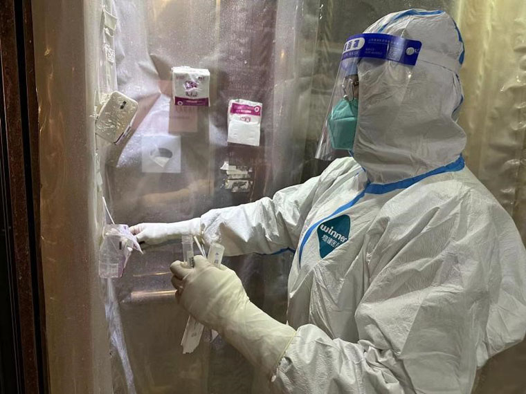 為方便隊(duì)友,他提前撕好膠布待隊(duì)友使用,將防護(hù)用品分區(qū)擺放并手寫標(biāo)記,提前備好不同品牌的防護(hù)用品,這些措施不但得到隊(duì)友的認(rèn)可,也得到了其它醫(yī)療隊(duì)的贊許。隨著工作壓力越來越大,隊(duì)友們表現(xiàn)出焦慮不安、心情急躁。“加油,注意安全”“挺好,沒問題”“放心,有我們”這些話語時(shí)常掛在蘇明旭的嘴邊,“雖然只是幾句短短的鼓勵(lì),我相信言語的力量可以構(gòu)筑起一道無形的保護(hù)墻,讓隊(duì)員們可以更暖心的工作”。