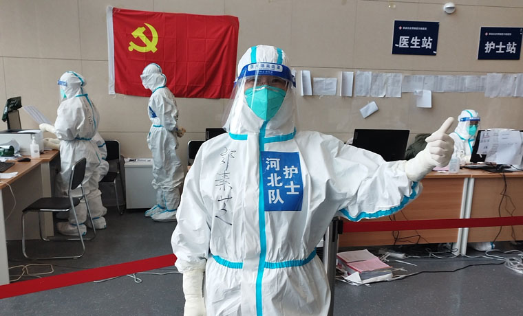 我院重癥醫(yī)學(xué)科東院區(qū)護(hù)士長郭素芝,擔(dān)任河北醫(yī)療隊(duì)臨時(shí)護(hù)理部副主任和院感防控崗位組長,“該崗位至關(guān)重要,是所有隊(duì)員院感防控的第一道防線,感控工作主要涉及人和物,其中做好人員培訓(xùn)是重中之重”。在醫(yī)療隊(duì)統(tǒng)籌協(xié)調(diào)下,她第一時(shí)間組建了院感督導(dǎo)隊(duì)伍,把來自河北多家醫(yī)院的42名護(hù)理人員凝聚在一起,逐步開展分層培訓(xùn)和考核,強(qiáng)化隊(duì)伍整體的防護(hù)用品穿脫技能,并制定督導(dǎo)人員職責(zé)和工作流程,開展線上培訓(xùn),嚴(yán)格落實(shí)相關(guān)規(guī)定,在這期間大家相互分享經(jīng)驗(yàn),簡化流程,迅速掌握了工作要點(diǎn)。