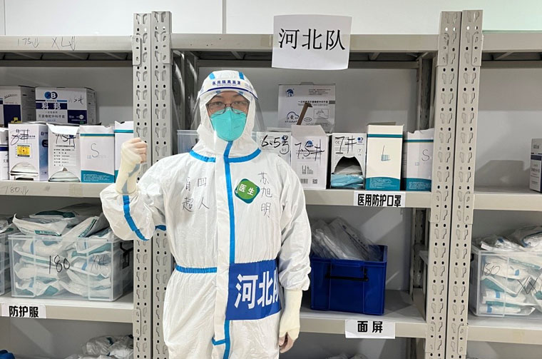 蘇旭明為我院超聲科醫(yī)師, “雖不在自己的熟知領(lǐng)域工作,但我堅(jiān)決服從安排,會(huì)不斷學(xué)習(xí)院感知識,迅速掌握工作要點(diǎn),不斷優(yōu)化工作流程,最大程度的確保隊(duì)員防護(hù)到位”。