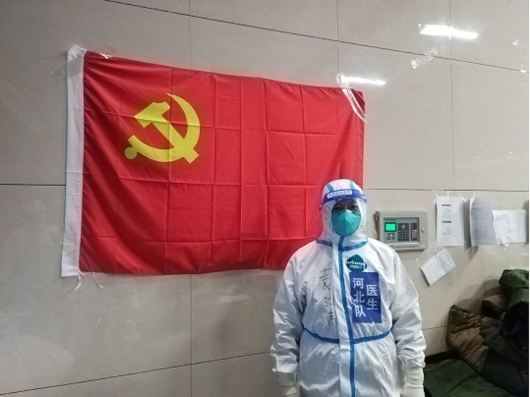 袁江偉醫(yī)生來自神經(jīng)外科,是隊(duì)伍中唯一有抗疫一線經(jīng)歷的人員,被選派參加了醫(yī)療隊(duì)院感防護(hù)培訓(xùn)任務(wù),作為老師參與了河北衛(wèi)健委組織的河北醫(yī)療隊(duì)各醫(yī)院之間院感防護(hù)交叉考核任務(wù)。他不畏艱辛,充分發(fā)揮黨員先鋒模范作用,在醫(yī)療隊(duì)值班人員不足的情況下,減少休息間隔提前接班,主動承擔(dān)夜班值班頻次,與護(hù)理隊(duì)員配合,優(yōu)化患者住院流程,最大限度減少感染風(fēng)險(xiǎn),并在病區(qū)推廣,同時(shí)他在方艙建設(shè)、隊(duì)內(nèi)組織等多方面做了很多工作。