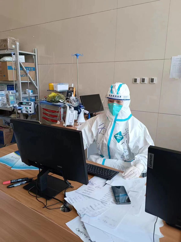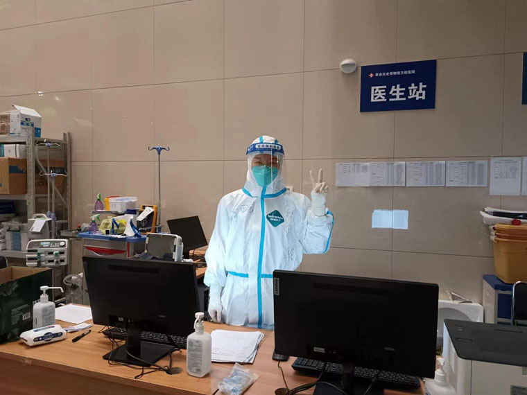 神經(jīng)內(nèi)科副主任米小昆是我院援內(nèi)蒙古抗疫醫(yī)療隊(duì)臨時(shí)黨支部書記和醫(yī)療隊(duì)隊(duì)長,第一時(shí)間進(jìn)艙熟悉病區(qū)環(huán)境及操作流程,及時(shí)向隊(duì)員們做進(jìn)艙前宣教,積極應(yīng)對突發(fā)事件,平穩(wěn)把控整個(gè)病區(qū)工作順利進(jìn)行。她以高度的責(zé)任感和大局意識參與制定了10余項(xiàng)方艙醫(yī)院標(biāo)準(zhǔn)制度流程,積極倡導(dǎo)人性化服務(wù)理念,對可能發(fā)生的風(fēng)險(xiǎn)環(huán)節(jié)進(jìn)行預(yù)判,謹(jǐn)防不良事件的發(fā)生。作為醫(yī)療組組長,在完成繁重管理任務(wù)同時(shí),每天還承擔(dān)著大量感染者的醫(yī)療會診工作。她為既往腦血管病等慢性病的感染者建立統(tǒng)計(jì)表并重點(diǎn)關(guān)注,幫助很多患者在病程早期得到就診和轉(zhuǎn)診,取得了良好的救治效果。面對人員變動、政策調(diào)整等突發(fā)情況,她積極與上級溝通,團(tuán)結(jié)隊(duì)員、疏導(dǎo)壓力,始終以堅(jiān)韌、果敢的作風(fēng)沖鋒在抗疫第一線。