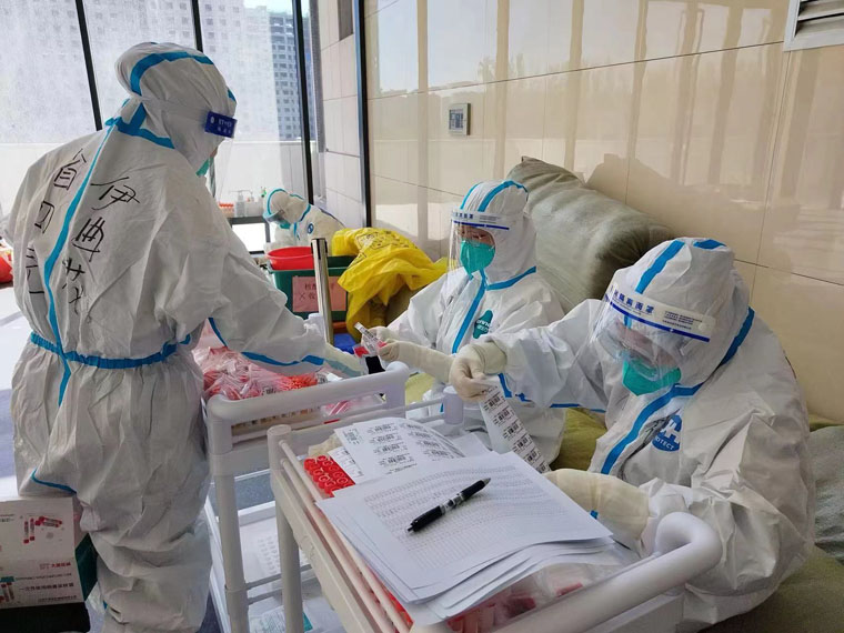 10月9日,按照國(guó)務(wù)院聯(lián)防聯(lián)控機(jī)制統(tǒng)一部署和河北省委、省政府要求,我院支援內(nèi)蒙古抗疫醫(yī)療隊(duì)41名隊(duì)員經(jīng)過(guò)緊張準(zhǔn)備立即奔赴呼和浩特支援抗疫工作。四院醫(yī)護(hù)人員逆風(fēng)而行,火速馳援革命歷史博物館方艙醫(yī)院開(kāi)展救治工作,并承擔(dān)了方艙內(nèi)最大病區(qū)X區(qū)的救治任務(wù)。該病區(qū)床位數(shù)最多、任務(wù)最重,但四院人不畏病毒、勇于擔(dān)當(dāng),時(shí)刻謹(jǐn)記院黨委的囑托,在醫(yī)療、護(hù)理、院感等多個(gè)工作崗位充分發(fā)揮嚴(yán)謹(jǐn)、認(rèn)真、顧全大局的優(yōu)良傳統(tǒng),在河北省援內(nèi)蒙古的七支醫(yī)療隊(duì)中,我院院感防護(hù)成績(jī)?yōu)榈谝幻T邳h和人民最需要的時(shí)候,圓滿完成上級(jí)領(lǐng)導(dǎo)交辦的光榮而艱巨的任務(wù)。從前線“逆行”到后方“護(hù)航”,四院人不吝付出、奔波不停、扎實(shí)工作,為河北省乃至全國(guó)的疫情防控貢獻(xiàn)了“四院力量”。