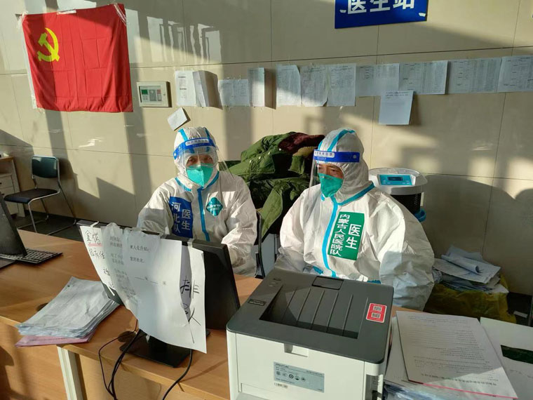 經(jīng)內(nèi)蒙古方艙黨委組織研究決定,在一線火速成立了我院援助內(nèi)蒙古抗疫醫(yī)療隊(duì)臨時(shí)黨支部,米小昆同志任黨支部書(shū)記,張縝同志任黨支部副書(shū)記,戴麗娟、劉嘉寅、杜彥艷同志任支部委員。火線建立的臨時(shí)黨支部充分發(fā)揮黨支部的戰(zhàn)斗堡壘作用和黨員的先鋒模范作用,強(qiáng)調(diào)黨建引領(lǐng),突出黨員作用,注重關(guān)愛(ài)延伸,以優(yōu)異的抗疫成績(jī)向黨和人民交出了一份出色的“紅色答卷”。黨支部把“亮身份、作表率”放在了突出位置,在醫(yī)療站、護(hù)理站醒目位置懸掛黨旗,印制黨員標(biāo)識(shí),胸口貼有紅色標(biāo)簽的黨員干部活躍在方艙的每個(gè)角落。在抗疫一線,黨員用實(shí)際行動(dòng)影響著每一位隊(duì)員,群眾入黨熱情高漲,劉子嘉等共13位隊(duì)員遞交了入黨申請(qǐng)書(shū)。在支部領(lǐng)航下,醫(yī)療隊(duì)展現(xiàn)出精準(zhǔn)有效的醫(yī)療“硬實(shí)力”。