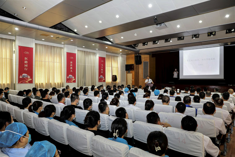 馬景濤副院長結合后勤工作實際,緊緊圍繞習近平新時代中國特色社會主義思想,帶領大家認真學習了黨的二十大報告精神。他對報告中15個部分進行分解和詮釋,從不同角度深入淺出地講述了國家支撐、科教興國戰(zhàn)略、文化自信、人與自然和諧共生、中國式現代化、全面從嚴治黨等內容,并結合自身實際,從求知求學、從醫(yī)經歷等分享自己的初心使命。