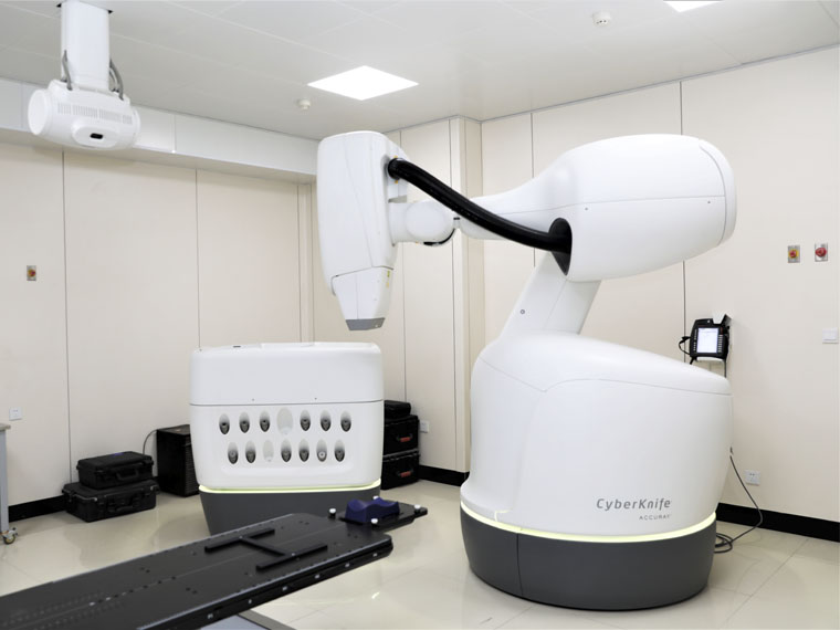我院射波刀放療系統自2022年10月投入使用以來,已完成百余例腫瘤患者的治療,涵蓋腦瘤、腦轉移瘤、肺癌、肺轉移瘤、骨轉移瘤等多個病種。射波刀可以治療全身各部位腫瘤,一般僅需1至5次照射,即可完成全部放療劑量。我院將充分利用射波刀“高精度、智能化”的優勢,在顱內腫瘤、脊柱旁腫瘤、鄰近重要臟器的腫瘤、容易隨呼吸移動的腫瘤如肺癌、肝癌、胰腺癌等方面深入探索、披荊斬棘,為更多癌癥患者提供高質量的醫療服務。