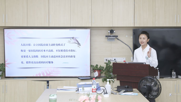 “有時(shí)去治愈,常常去幫助,總是去安慰”, 徐小莉老師以特魯多博士的銘言作為開場(chǎng)白,全面詮釋了禮儀和溝通的重要性。通過現(xiàn)場(chǎng)模擬、巧設(shè)場(chǎng)景、機(jī)智問答等多種形式,徐小莉老師重現(xiàn)就醫(yī)問診等醫(yī)患溝通情節(jié),講授了工作生活中交往禮儀的細(xì)節(jié)和技巧。“醫(yī)護(hù)人員的說話方式、溝通態(tài)度對(duì)患者及家屬會(huì)產(chǎn)生直接影響,甚至?xí)绊懟颊叩纳硇慕】怠⒅委熜Ч绊懣剖壹搬t(yī)院的形象”,很多年輕的醫(yī)務(wù)工作者表達(dá)了學(xué)習(xí)感受。