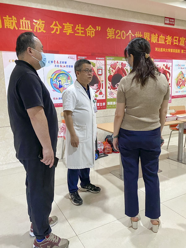 今年6月14日是第20個世界獻(xiàn)血者日,我國的活動口號是“捐獻(xiàn)血液 分享生命”,主題為“匯聚青春正能量 無償獻(xiàn)血傳愛心”。為進(jìn)一步弘揚(yáng)救死扶傷的人道主義精神,積極傳遞社會正能量,我院第25黨支部輸血科開展“世界獻(xiàn)血者日”主題黨日活動,現(xiàn)場發(fā)放宣傳材料200余份,提供相關(guān)咨詢服務(wù)百余人次,受到廣大群眾一致好評。本次活動得到河北省血液中心的大力支持。