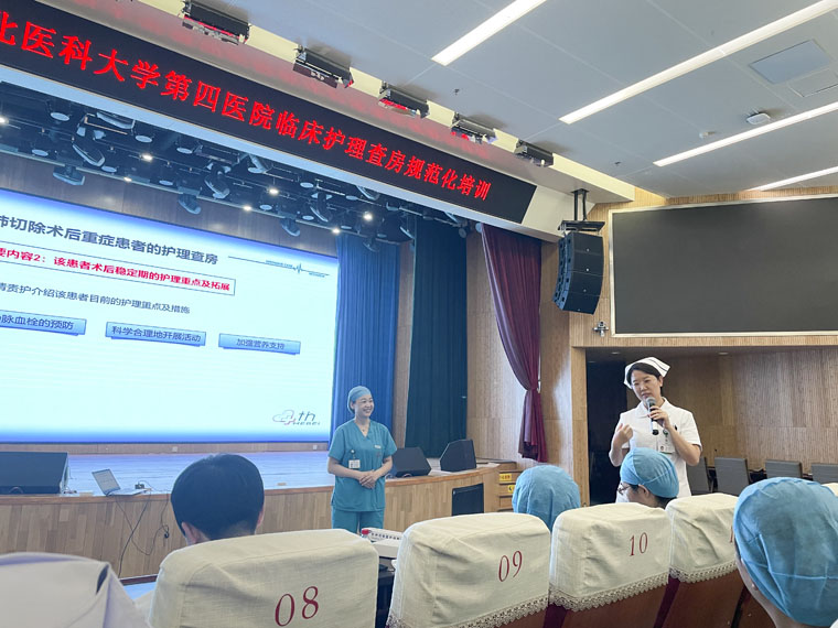 為推動各科室臨床護理查房的規(guī)范化實施,落實國家衛(wèi)健委《進一步改善護理服務行動計劃(2023-2025年)》的要求,6月27日,我院護理部組織開展了臨床護理查房規(guī)范化培訓,由重癥醫(yī)學科護理團隊組織實施,各科室護士長、教學負責人以及教學骨干100余人參加。