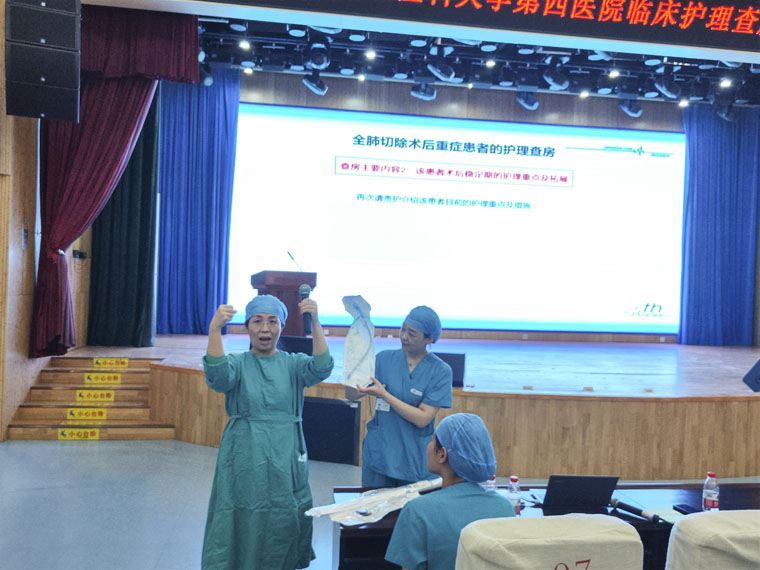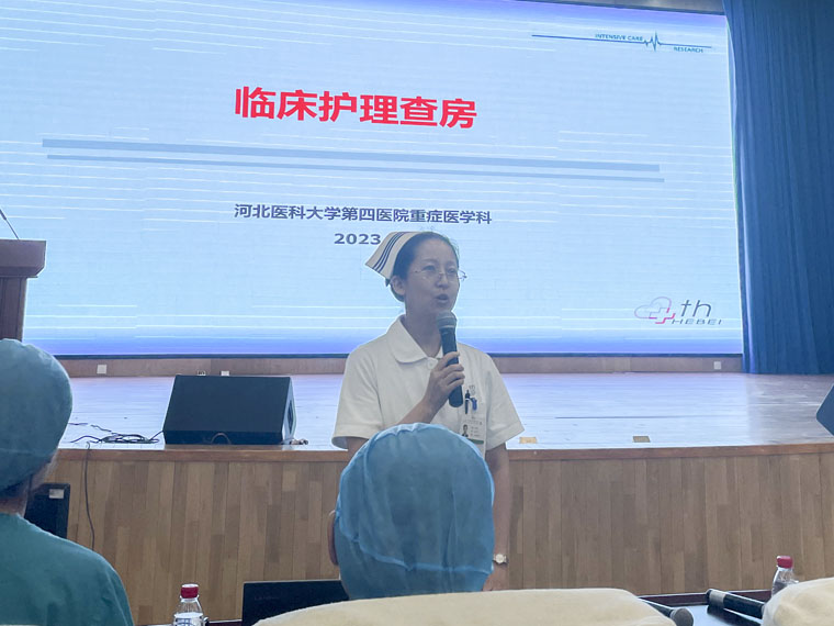 重癥醫(yī)學科尹彥玲護士長在總結中指出,臨床護理查房實現了醫(yī)護一體化和多學科協(xié)作,此次護理查房培訓通過多種方式拓展護理人員的思路,起到提高護理人員知識水平的效果。她向大家分享了重癥醫(yī)學科近2年開展臨床護理查房的實踐過程和心得體會,指出臨床護理查房不是為了檢查和作秀,它的規(guī)范化開展必將有利于今后護理質量和護理人員素質的整體提升。