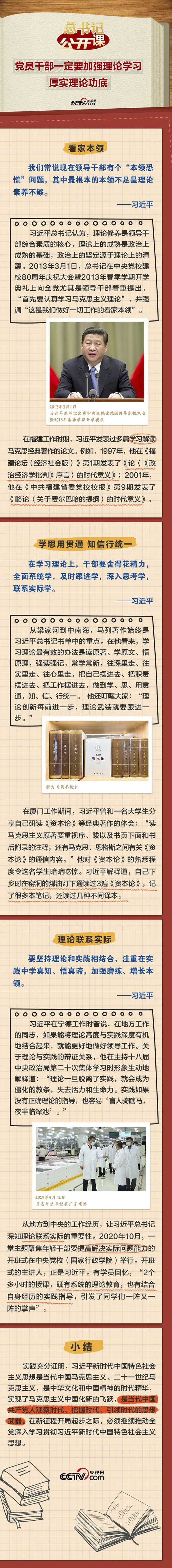 習(xí)近平總書(shū)記高度重視對(duì)黨員干部理論學(xué)習(xí)能力的培養(yǎng)。他說(shuō):“黨員干部一定要加強(qiáng)理論學(xué)習(xí)、厚實(shí)理論功底,自覺(jué)用新時(shí)代黨的創(chuàng)新理論觀察新形勢(shì)、研究新情況、解決新問(wèn)題,使各項(xiàng)工作朝著正確方向、按照客觀規(guī)律推進(jìn)。”這一期《總書(shū)記“公開(kāi)課”》聚焦總書(shū)記關(guān)于理論學(xué)習(xí)的深邃思考,讓我們一起領(lǐng)悟。
