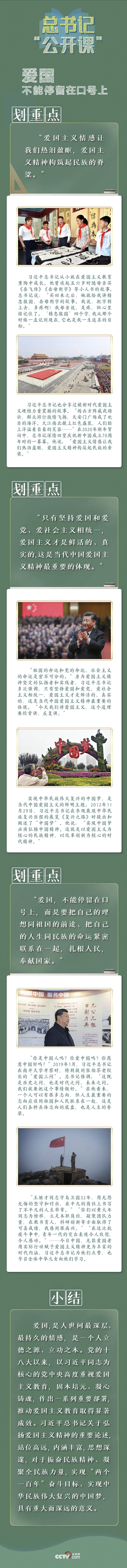 “我們常講,做人要有氣節(jié)、要有人格。氣節(jié)也好,人格也好,愛國是第一位的。”習(xí)近平總書記提出,愛國不能停留在口號(hào)上,而是要把自己的理想同祖國的前途、把自己的人生同民族的命運(yùn)緊密聯(lián)系在一起,扎根人民,奉獻(xiàn)國家。這一期《總書記“公開課”》聚焦總書記關(guān)于愛國主義的深邃思考,讓我們一起學(xué)習(xí)。