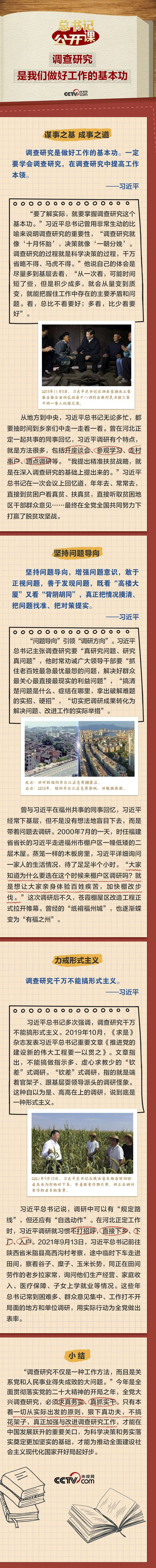 “調(diào)查研究是謀事之基、成事之道,沒(méi)有調(diào)查就沒(méi)有發(fā)言權(quán),沒(méi)有調(diào)查就沒(méi)有決策權(quán)。調(diào)查研究是我們做好工作的基本功。”習(xí)近平總書(shū)記非常重視調(diào)查研究,并一以貫之身體力行、率先垂范,推動(dòng)全黨大興調(diào)查研究之風(fēng)。本期《總書(shū)記“公開(kāi)課”》聚焦總書(shū)記關(guān)于調(diào)查研究的所思所言所行,讓我們一起學(xué)習(xí)領(lǐng)會(huì)。