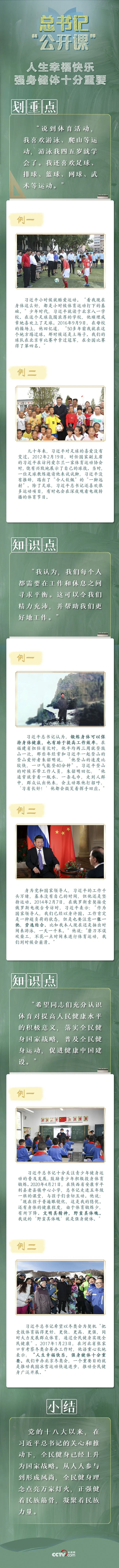 “人生幸福快樂,強身健體十分重要。”習近平總書記是全民健身的倡導者、引領者,也是身體力行的實踐者。本期《總書記“公開課”》,讓我們一起走近“體育愛好者”習近平,了解學習他關于普及全民健身運動的深邃思考。