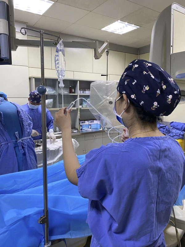 近年來,放射科介入手術(shù)室與肝膽外科、消化內(nèi)科、心內(nèi)科、心外科、內(nèi)分泌科等科室密切配合,開展腫瘤介入、外周血管介入、大血管介入、非血管介入、神經(jīng)介入、心臟冠脈介入及結(jié)構(gòu)性心臟病介入等術(shù)式,依托復(fù)合手術(shù)室平臺,與外科聯(lián)合開展了針對多種復(fù)雜疾病的“外科手術(shù)+介入”的綜合治療,其創(chuàng)傷小、見效快、并發(fā)癥少等優(yōu)勢,得到了患者及家屬的廣泛認可。護理團隊以扎實的專業(yè)知識和過硬的操作能力、應(yīng)急能力、溝通能力全力配合術(shù)者操作,為成千上萬的腫瘤患者鋪就了平安之路。