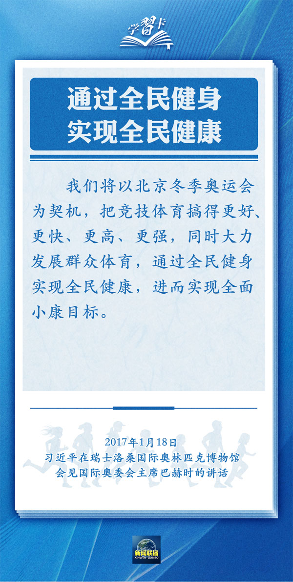 “全民健身是全體人民增強體魄、健康生活的基礎和保障,人民身體健康是每一個人成長和實現幸福生活的重要基礎。”