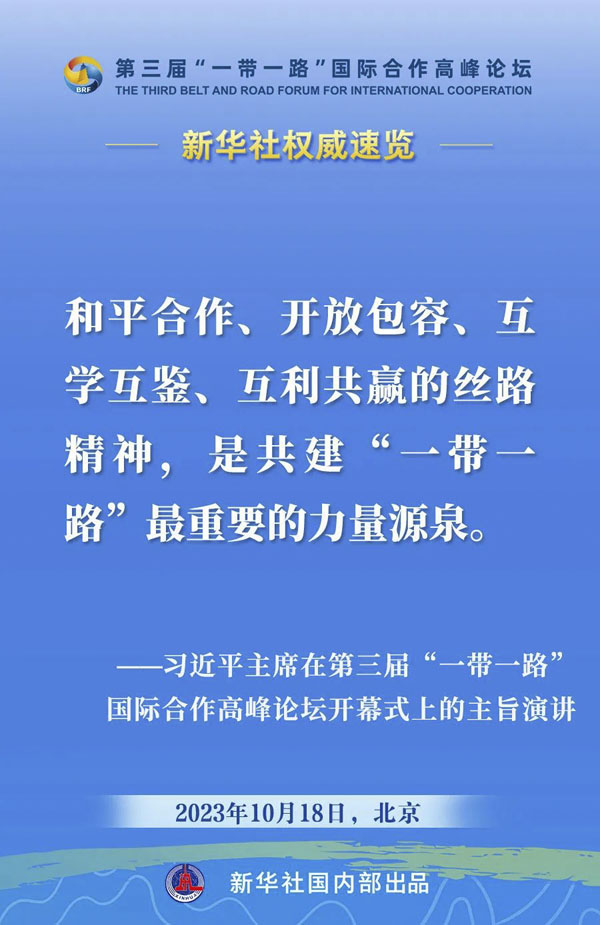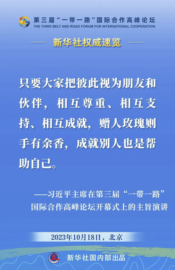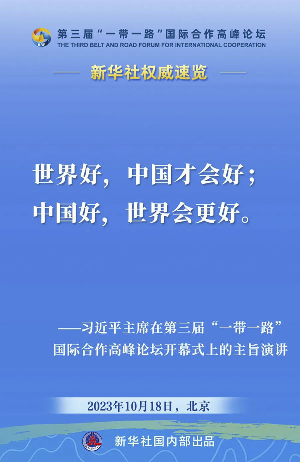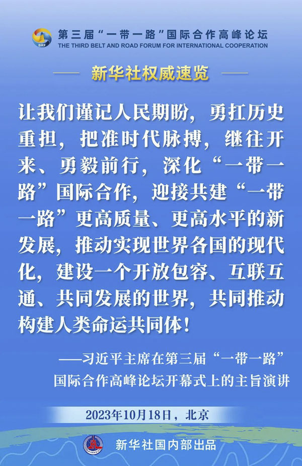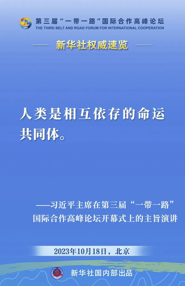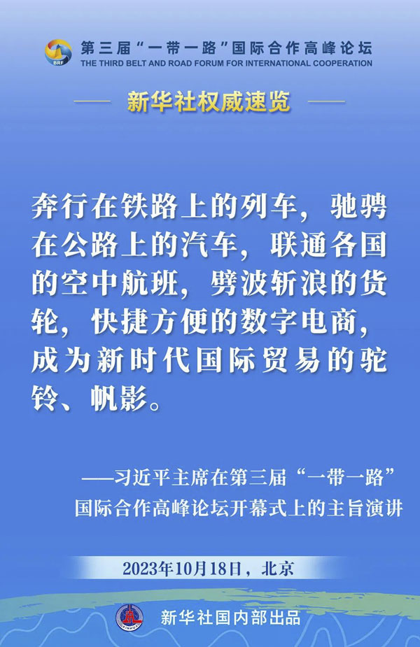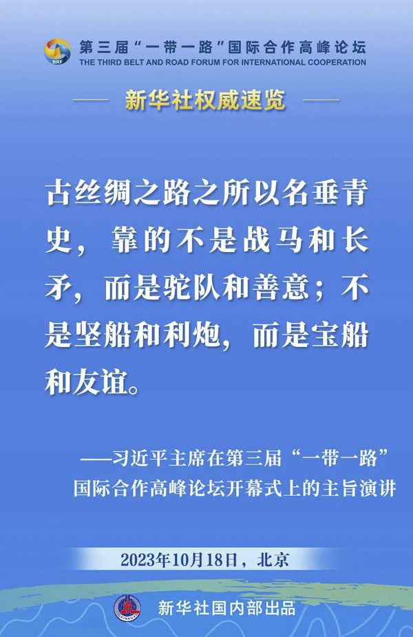 10月18日,國家主席習近平在第三屆“一帶一路”國際合作高峰論壇開幕式上發(fā)表主旨演講。一起來看金句。