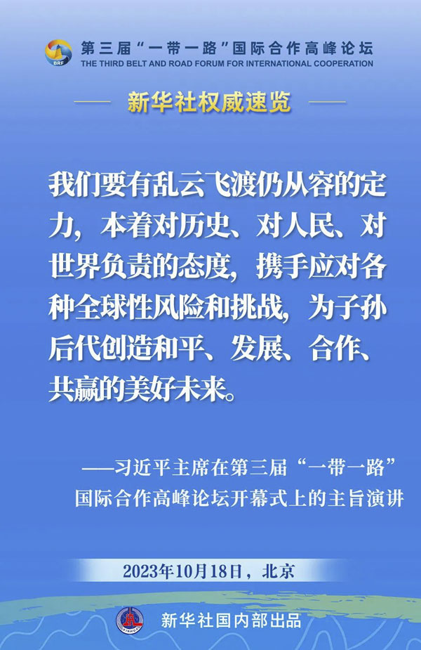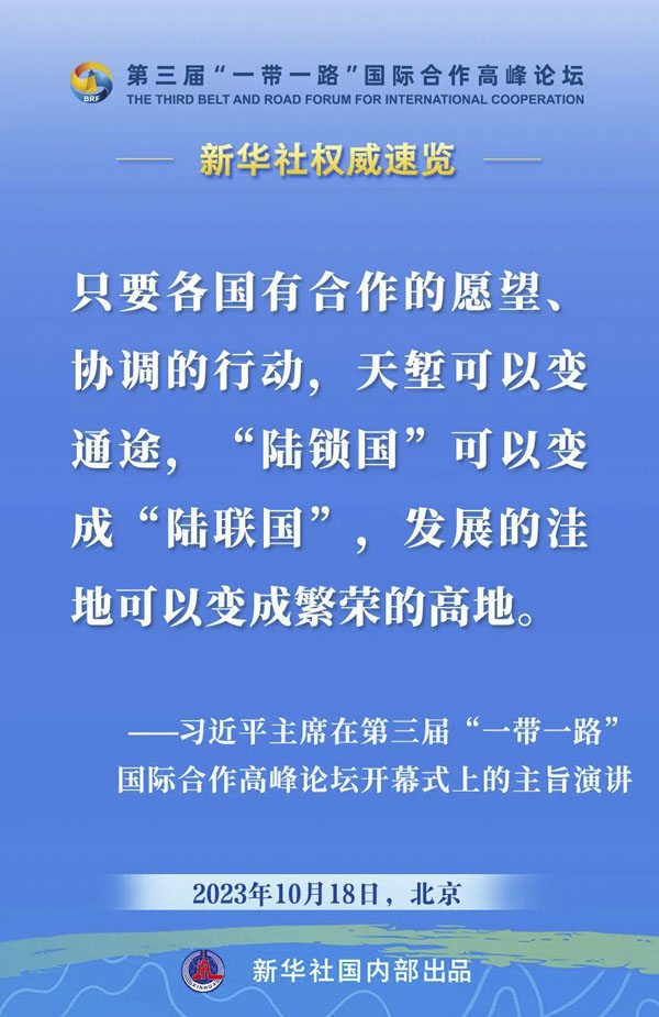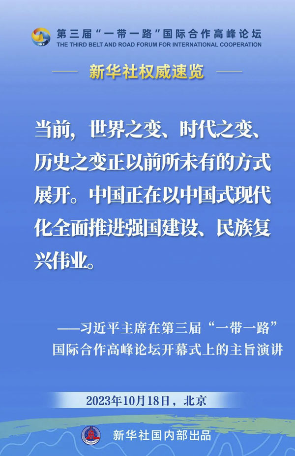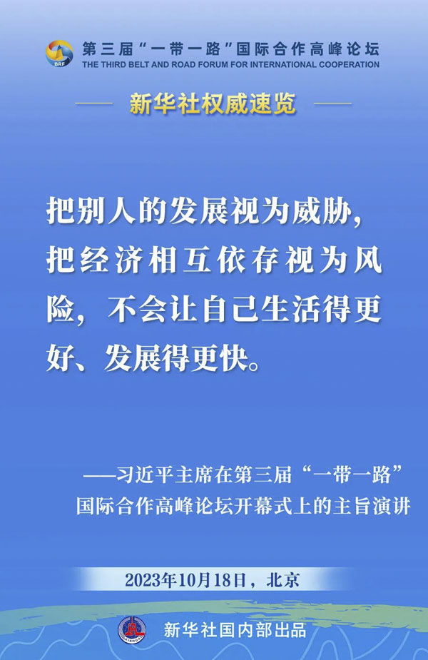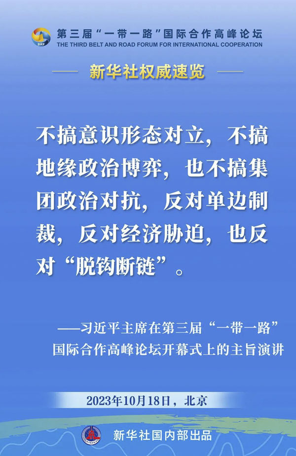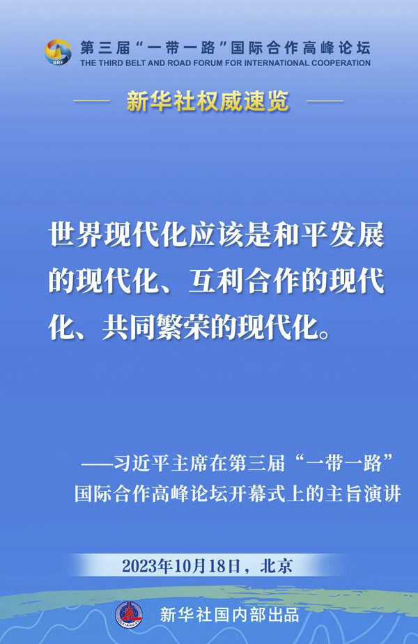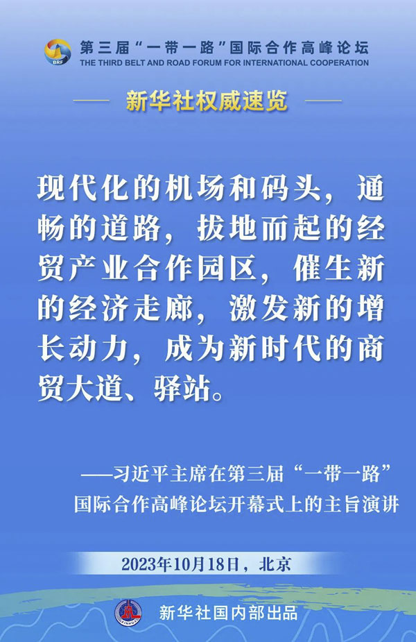 10月18日,國家主席習近平在第三屆“一帶一路”國際合作高峰論壇開幕式上發(fā)表主旨演講。一起來看金句。