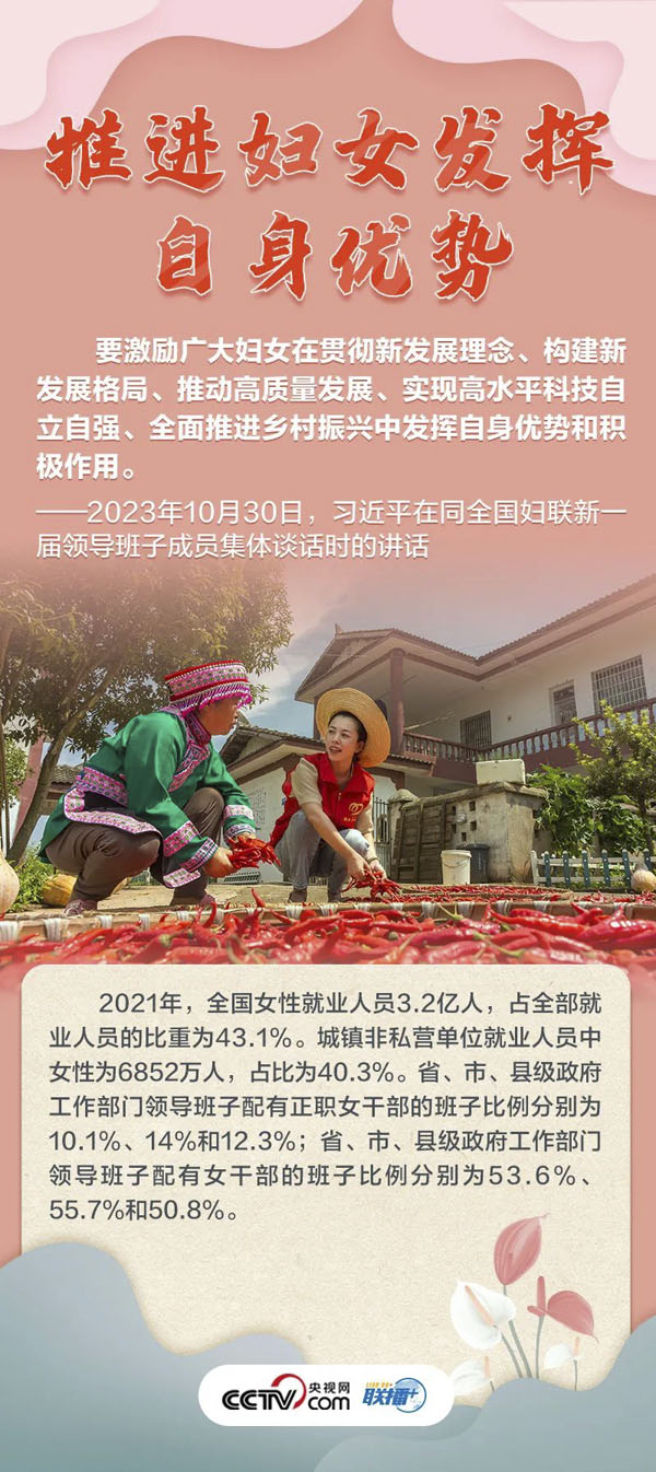 “婦聯(lián)是黨和政府聯(lián)系婦女群眾的橋梁紐帶。”10月30日,習近平總書記同全國婦聯(lián)新一屆領(lǐng)導班子成員集體談話并發(fā)表重要講話,高度肯定巾幗力量,并為新形勢下婦女事業(yè)和婦聯(lián)工作發(fā)展指明方向。