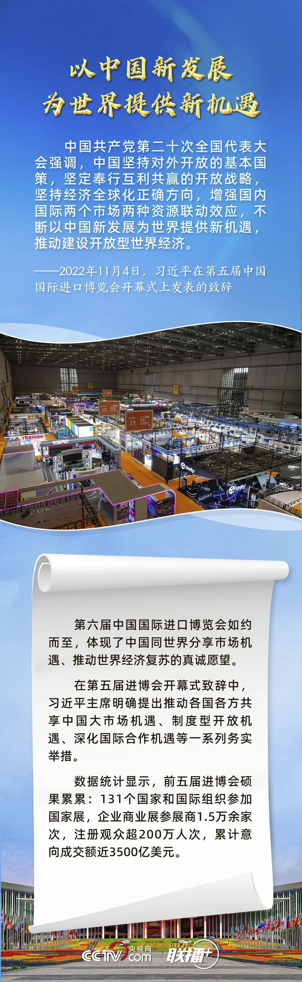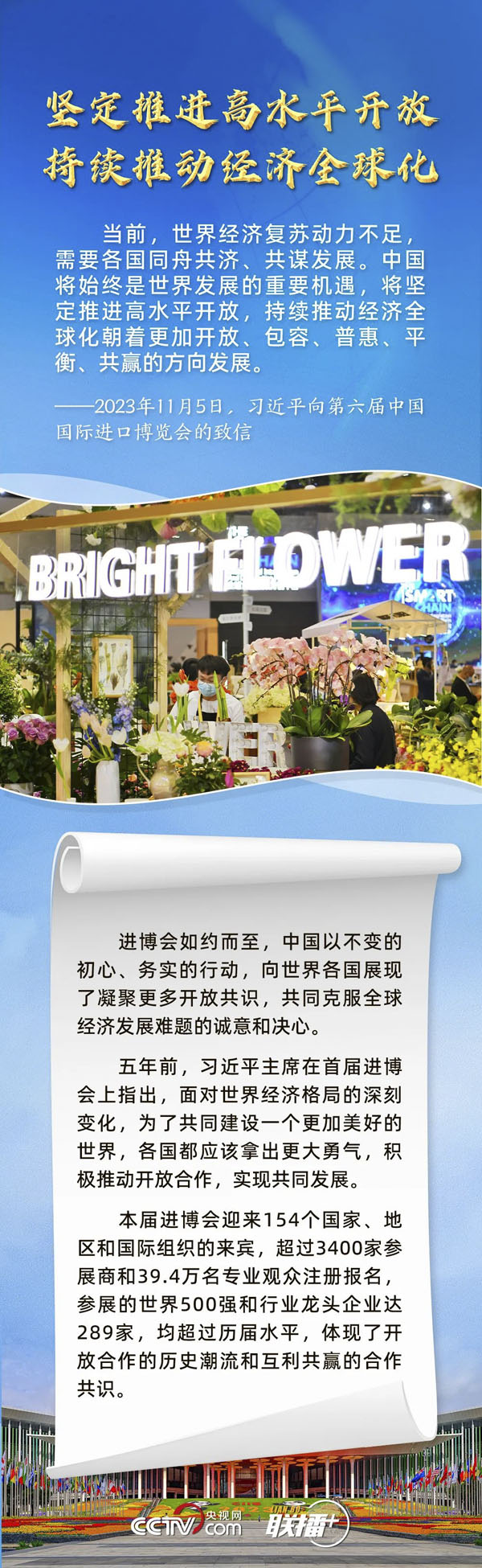 “中國(guó)擴(kuò)大高水平開(kāi)放的決心不會(huì)變,同世界分享發(fā)展機(jī)遇的決心不會(huì)變,推動(dòng)經(jīng)濟(jì)全球化朝著更加開(kāi)放、包容、普惠、平衡、共贏方向發(fā)展的決心不會(huì)變。”五年來(lái),習(xí)近平主席在進(jìn)博會(huì)上宣布一系列重大開(kāi)放舉措,充分彰顯了中國(guó)致力于促進(jìn)世界經(jīng)濟(jì)包容性增長(zhǎng),建設(shè)開(kāi)放型世界經(jīng)濟(jì)的信心與決心。